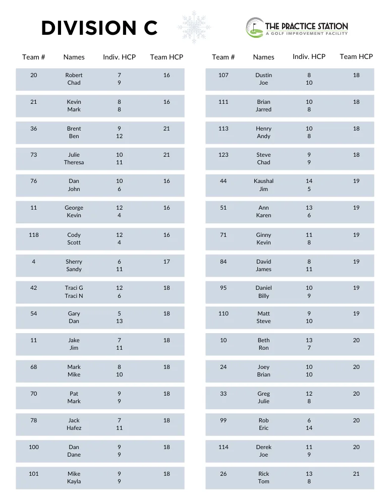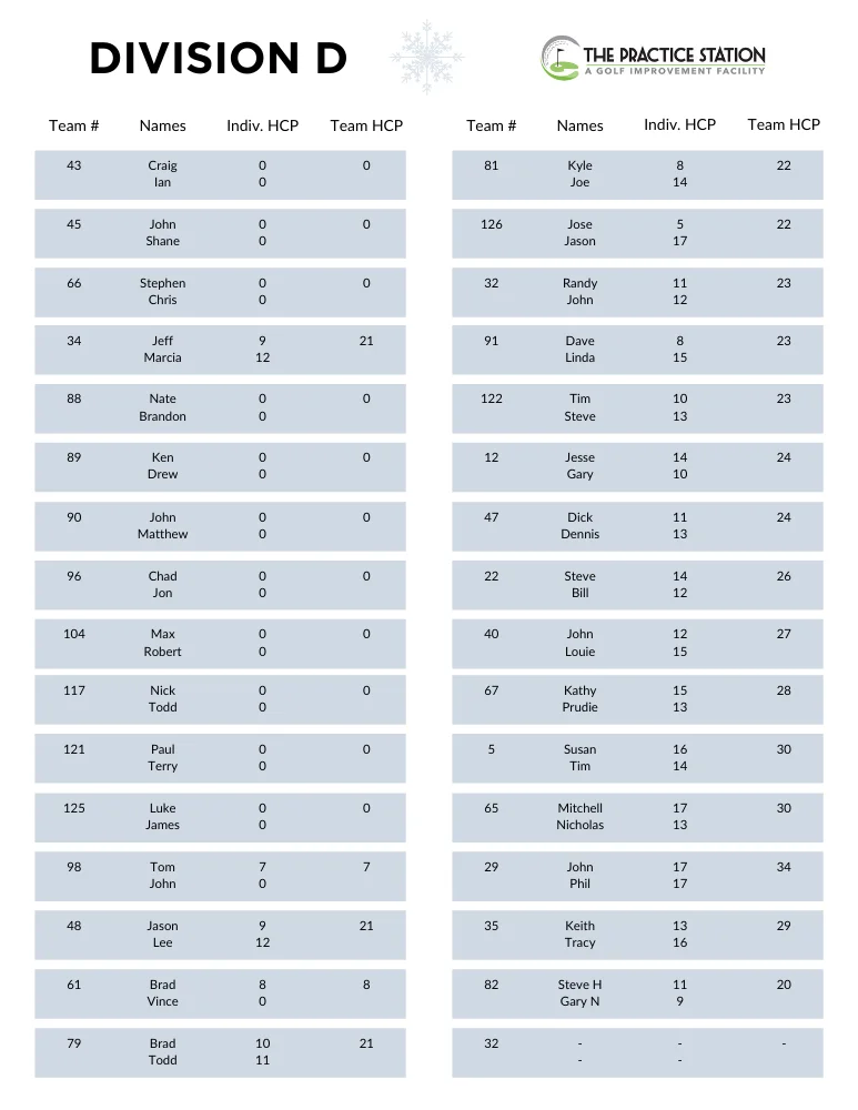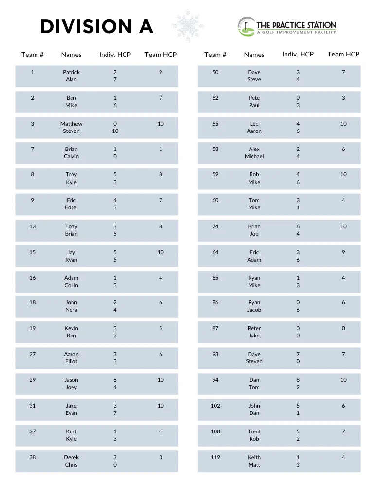 Winter League Standings